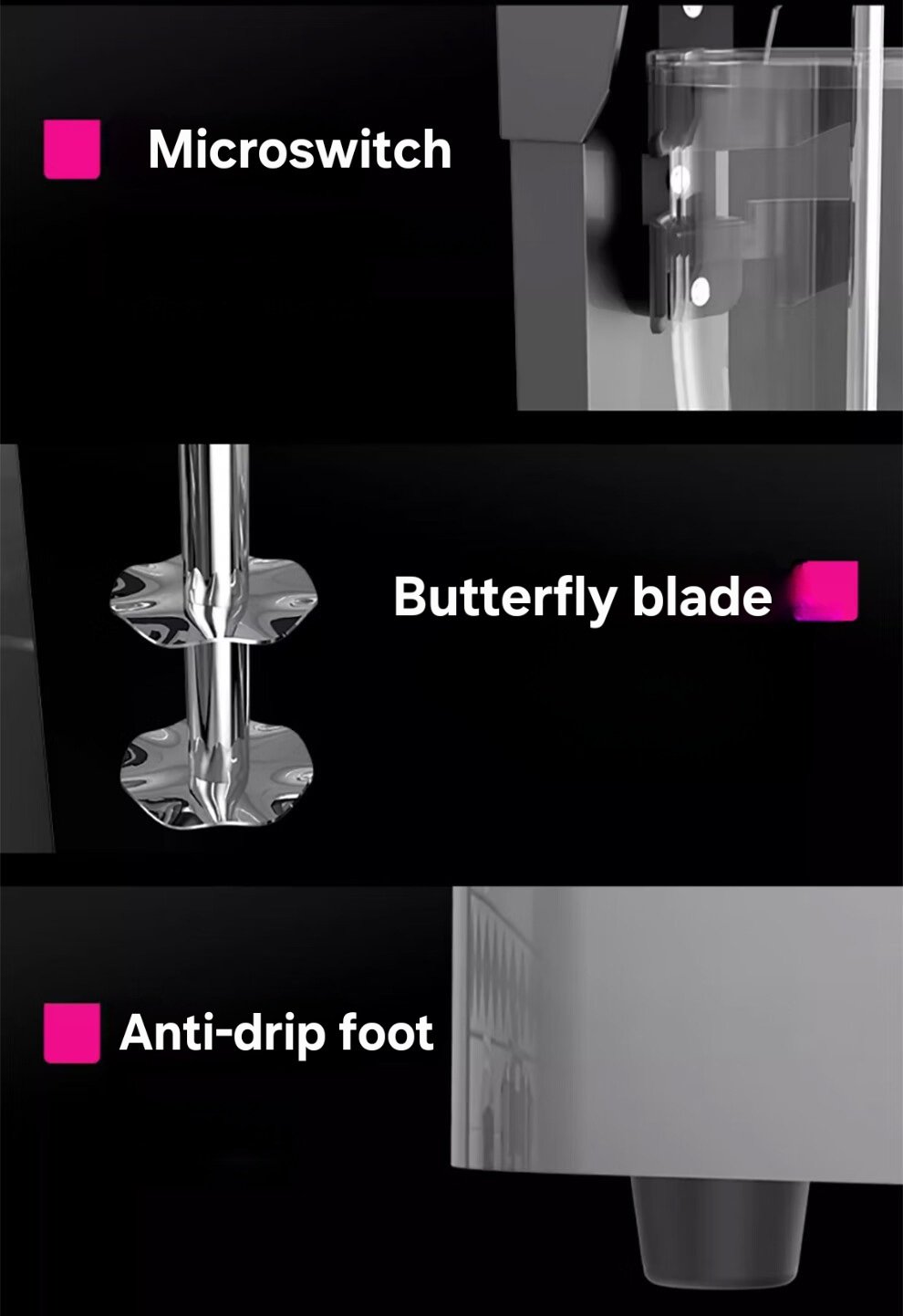 • Easy to Use: Designed with micro switch, intelligent sensing design. Turn on the shake maker machine, it will automatically work after the cup is buckled and stop stirring when the container is taken away. Lotus blade-like shape mixing head, 360°evenly stirred and effectively reduce the resistance