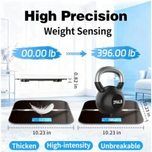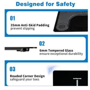 • Durable & Safe Construction – Crafted with a sturdy tempered glass platform and anti-slip pads, this digital bathroom scale provides stable support up to 396 lb capacity, offering confidence and safety during every weigh-in.