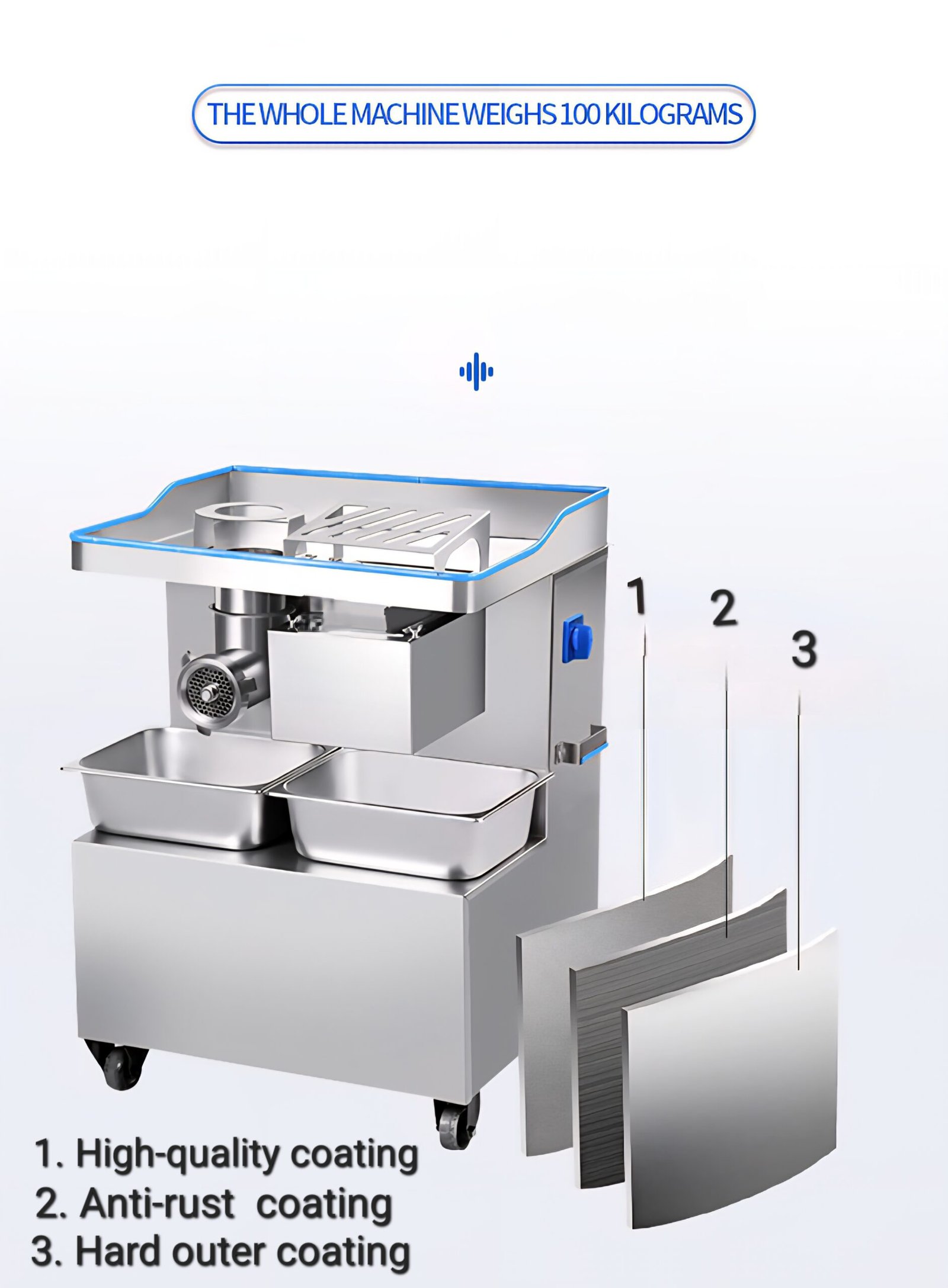 • Parameter: Material: High quality stainless steel, Voltage:110V, Power: 2200W, Specifications of Knife Group: 3.5mm, 5mm,7mm,18mm.Ground meat specifications: 6mm,8mm