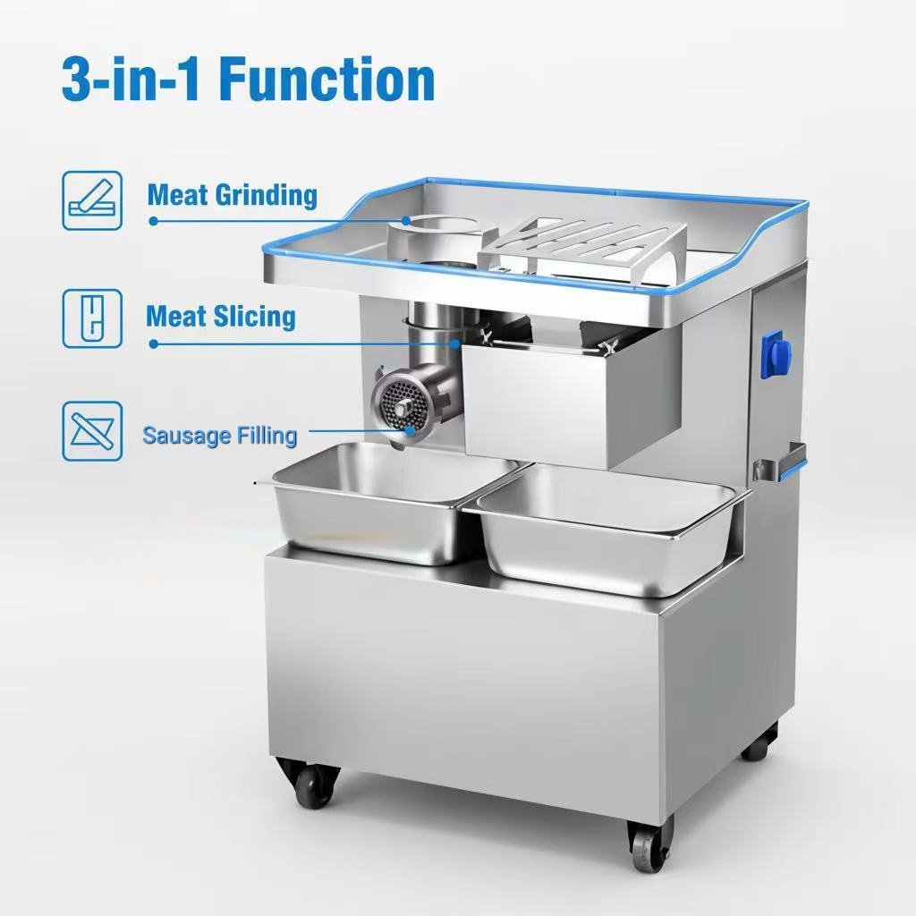 EZ-U Commercial Electric Meat Grinder and Slicer ,JQ-GG2X-22, Meat Cutter with 3.5mm,5mm,7mm,18mm Blade, Grinding with 6mm and 8mm Blade, .NSF