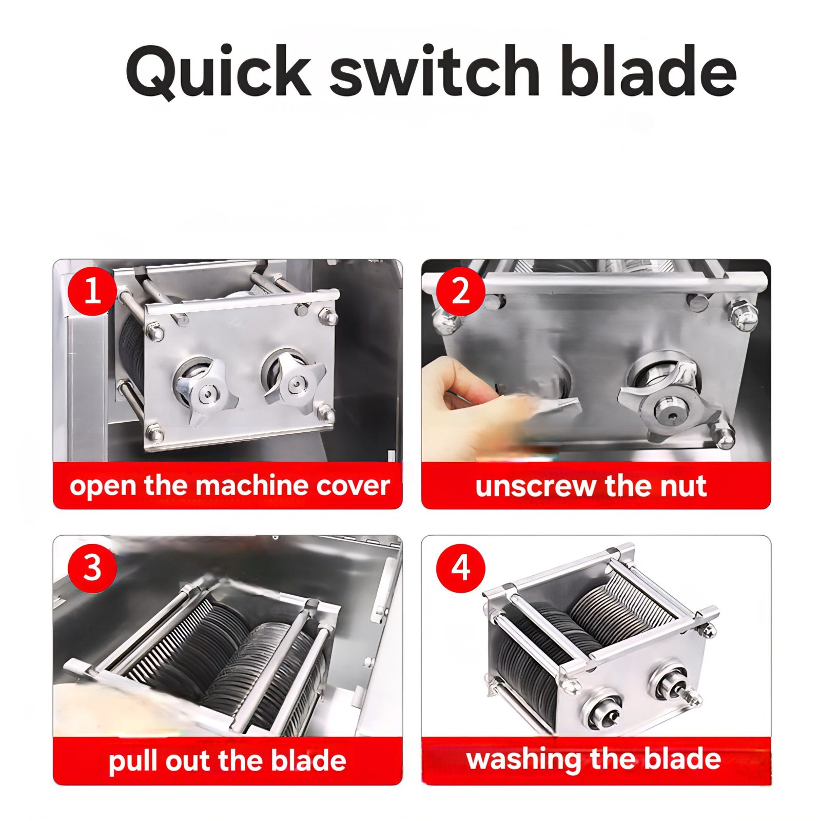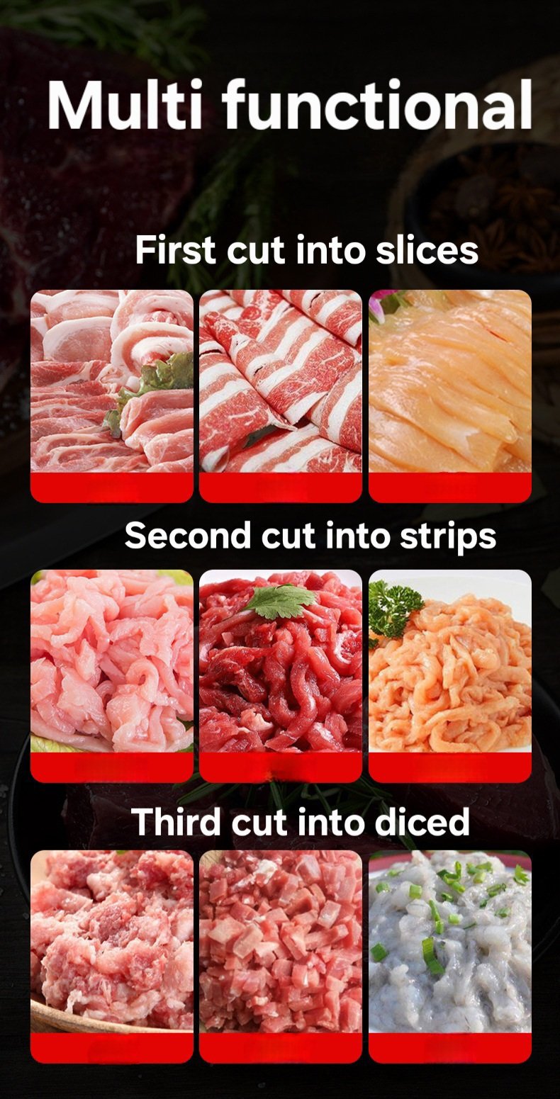 - VERSATILE CUTTING: Includes multiple blade options (3.5mm, 5mm, 7mm, and 18mm) for precise cutting of various meats including lamb, beef, and chicken