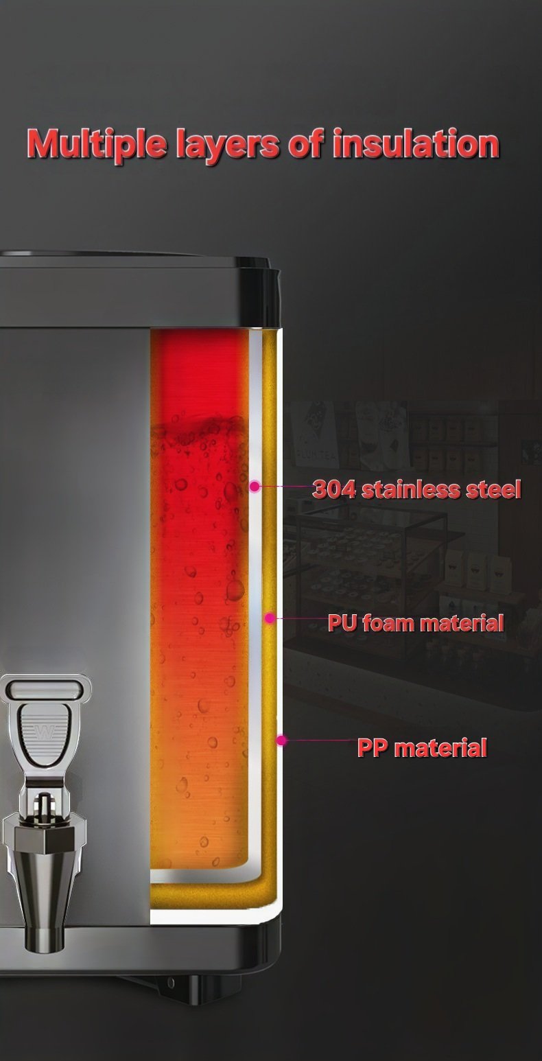 - STAINLESS STEEL INTERIOR: Our hot beverage dispenser has a food-grade 0.8MM stainless steel interior, which provides better stability, good for milk tea coffee, juice and sports drinks and it won’t retain smell and taste.